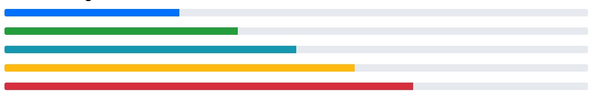 默认情况下进度条为蓝色,Bootstrap4 还提供了以下颜色的进度条:
