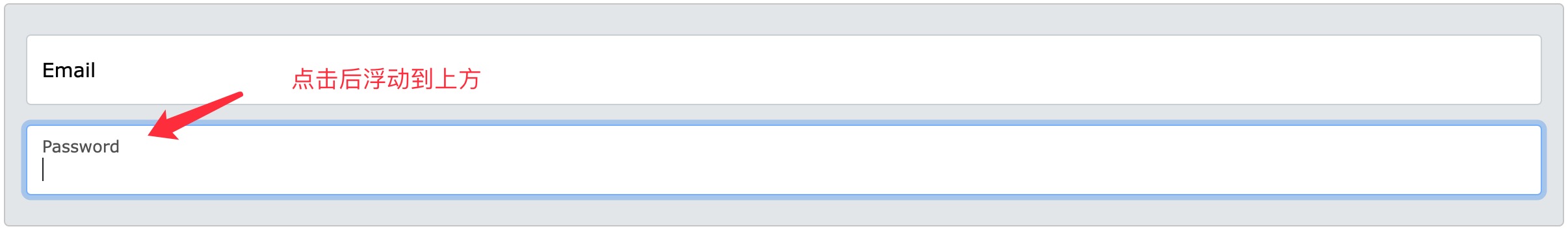 注意事项: <label> 元素必须在 <input> 元素之后,并且每个 <input> 元素都需要 placeholder 属性。
