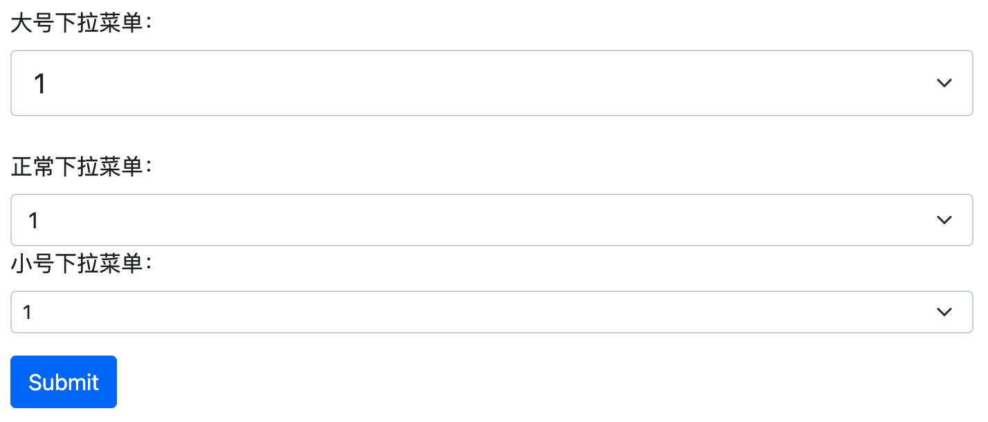 下拉菜单通过 .form-select-lg 或 .form-select-sm 类来修改大小: