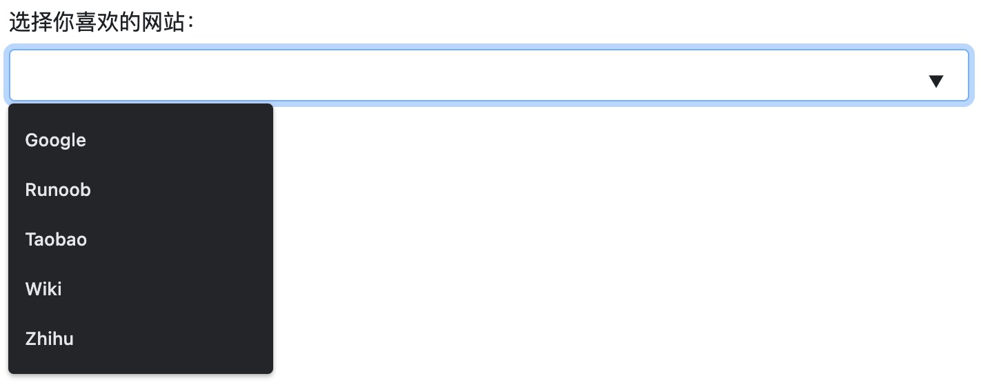 <label for="browser" class="form-label">选择你喜欢的网站:</label>