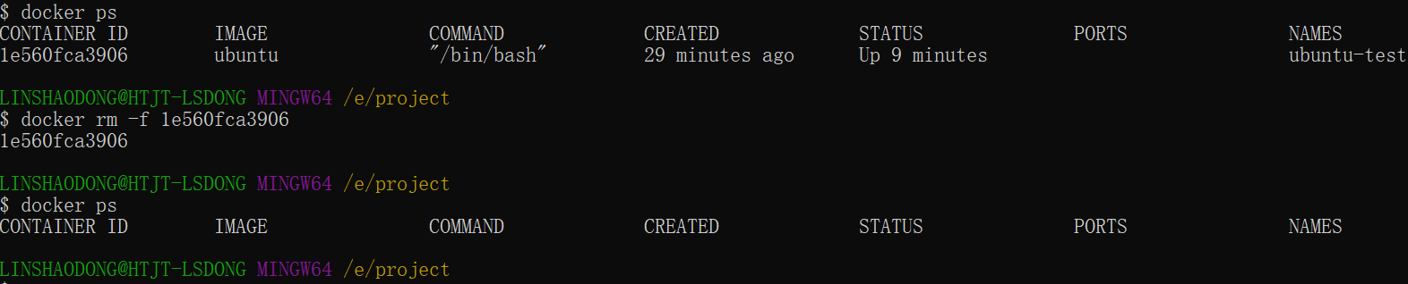 $ docker rm -f 1e560fca3906