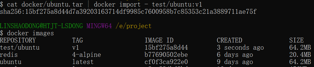$ cat docker/ubuntu.tar_docker import - test/ubuntu:v1