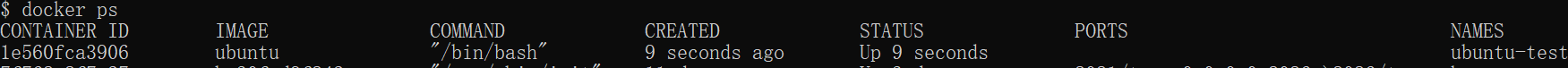 $ docker run -itd --name ubuntu-test ubuntu /bin/bash