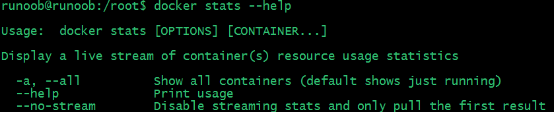 例如我们要查看 docker stats 指令的具体使用方法: