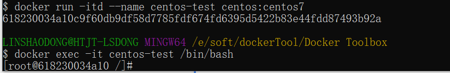4、运行容器,并且可以通过 exec 命令进入 CentOS 容器。