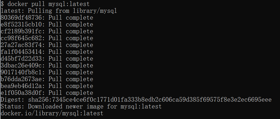 在上图中可以看到我们已经安装了最新版本(latest)的 mysql 镜像。