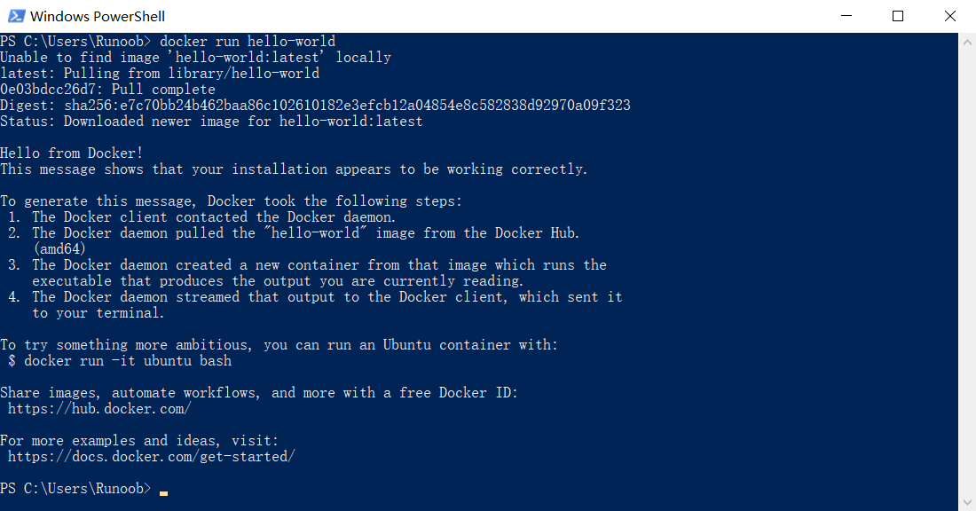 Status: Downloaded newer image for hello-world:latest