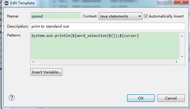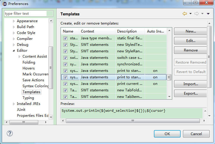 如果我们一个字母一个字母去编写,将是一个重复而又毫无意义的事情,这是我们就可以使用 Eclipse 代码模板来快速完成这些工作。