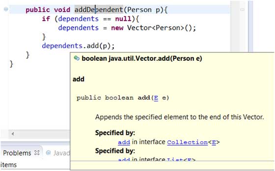 java 编辑器中将鼠标指针移至类上,将显示与该类相关的java文档信息。