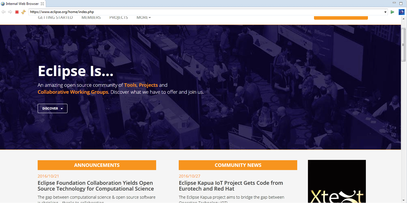 在内置浏览器中我们在地址栏中输入网址,如:https://www.eclipse.org/home/index.php,即可打开网页。
