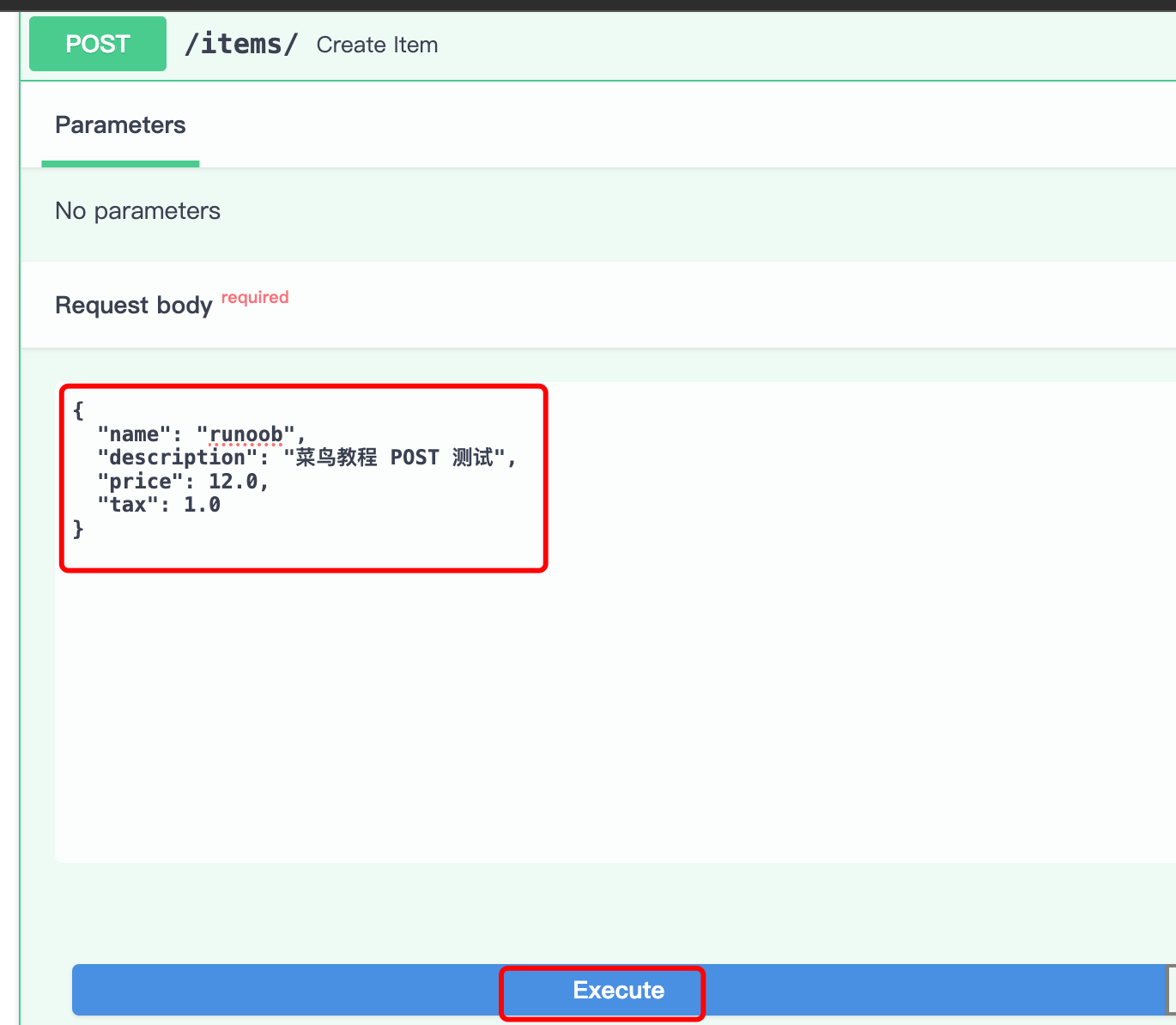 接下来我们可以打开 http://127.0.0.1:8000/docs 来进行 POST 测试: