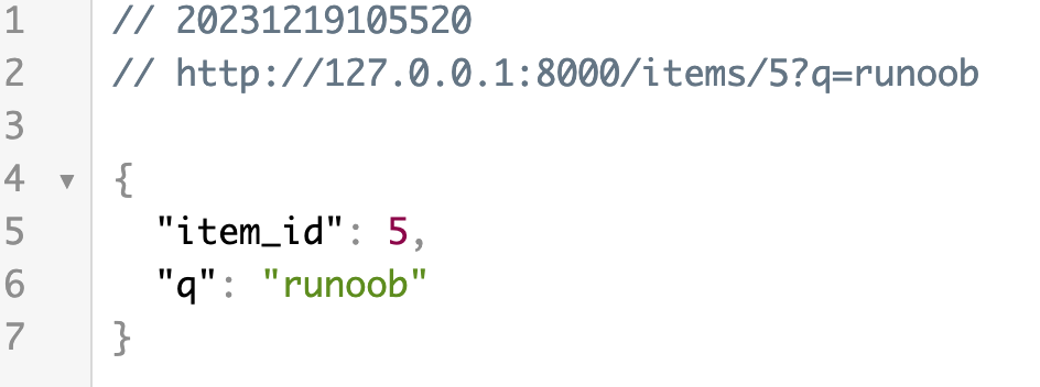 函数返回一个字典,包含传入的 item_id 和 q 参数。