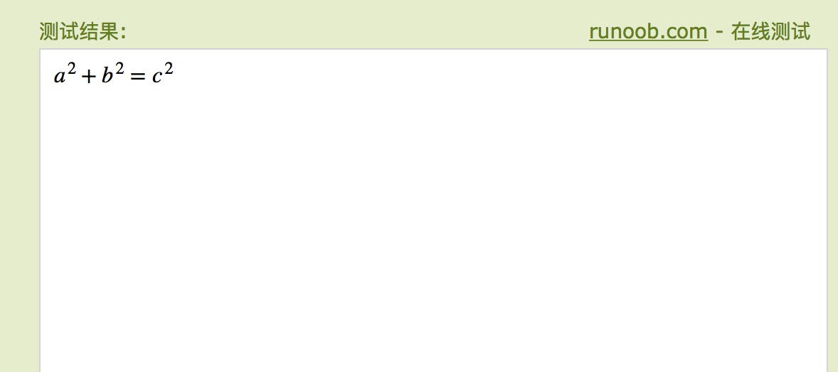 注意:目前只有 Firefox 或 Safari 浏览器支持,大部分浏览器还不支持 MathML 标签,如果你的浏览器不支持该标签,可以使用最新版的 Firefox 或 Safari 浏览器查看。
