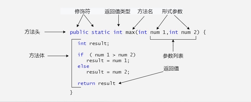 - 方法体:方法体包含具体的语句,定义该方法的功能。