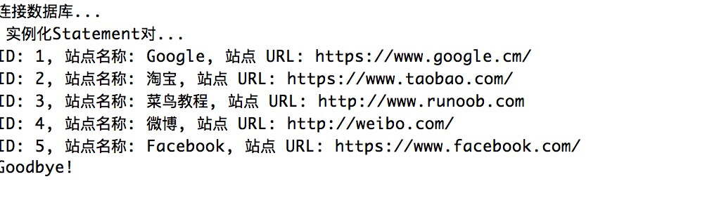 以下实例使用了 JDBC 连接 MySQL 数据库,注意一些数据如用户名,密码需要根据你的开发环境来配置: