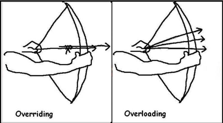 - (3)方法重载是一个类的多态性表现,而方法重写是子类与父类的一种多态性表现。