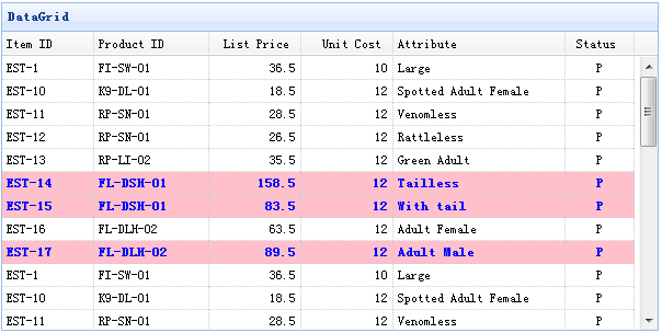 本教程将向您展示如何根据一些条件改变数据网格(datagrid)组件的行样式。当 listprice 值大于 50 时,我们将为该行设置不同的颜色。