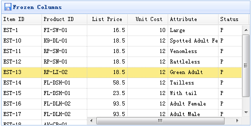本实例演示如何冻结一些列,当用户在网格上移动水平滚动条时,冻结列不能滚动到视图的外部。