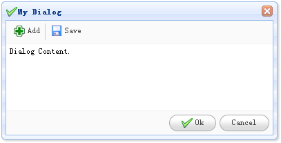 <div id="dd" class="easyui-dialog" style="padding:5px;width:400px;height:200px;" title="My Dialog" iconCls="icon-ok" toolbar="#dlg-toolbar" buttons="#dlg-buttons"> Dialog Content. </div>