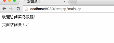 现在我们将上面的代码放置于main.jsp文件上,并访问http://localhost:8080/testjsp/main.jsp文件。你会看到页面会生成个计数器,在我们每次刷新页面时,计数器都会发生变化(每次刷新增加1)。