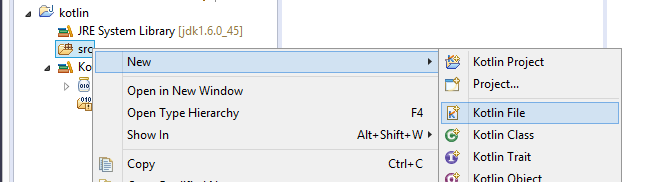 接下来 我们点击 src 文件夹,创建一个 Kotlin 文件,不用写 ".kt" ,默认自动添加,它可以任意命名,这里我们创建 hello