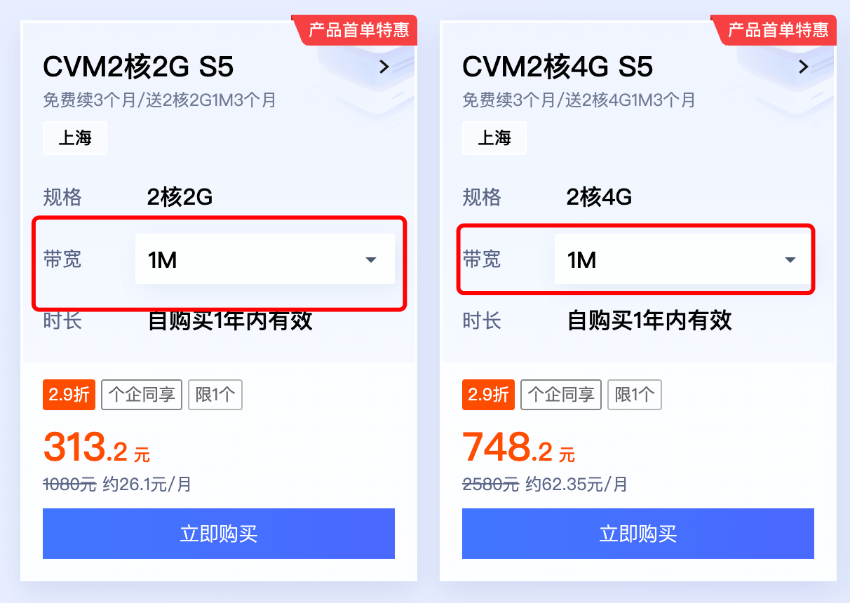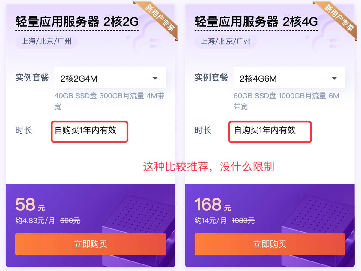注意:很多云服务器给新用户提供的优惠力度是最大,基本上都是 1~2 折,建议新注册的用户购买。