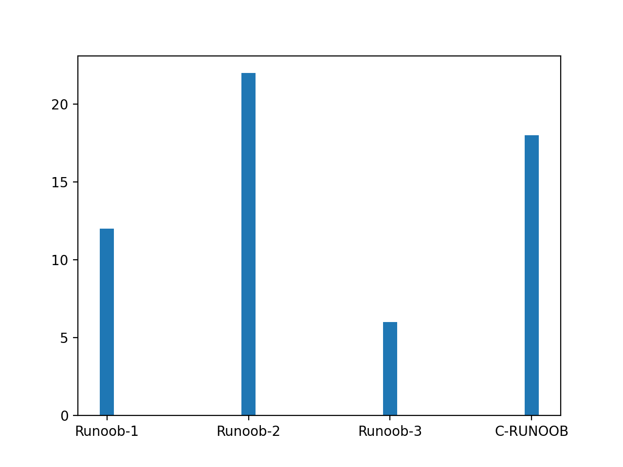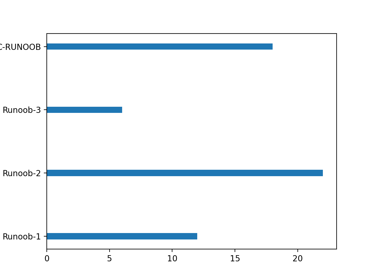 设置柱形图宽度,bar() 方法使用 width 设置,barh() 方法使用 height 设置 height