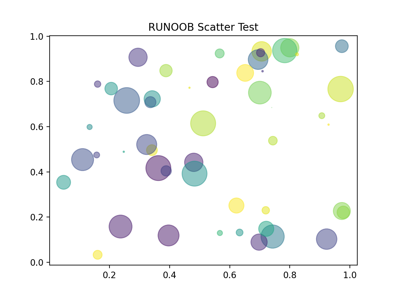 以下实例 scatter() 函数接收长度相同的数组参数,一个用于 x 轴的值,另一个用于 y 轴上的值: