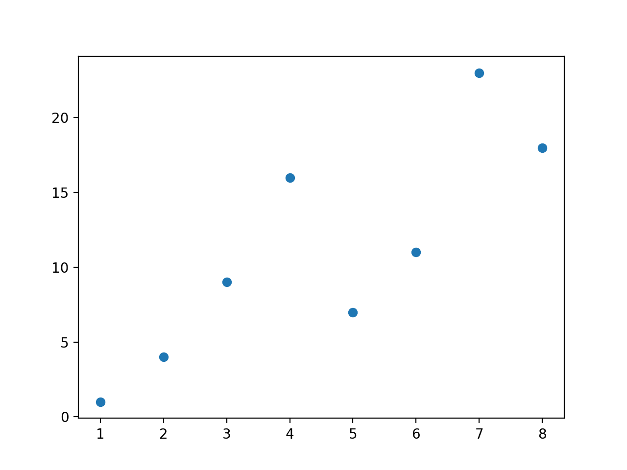 y = np.array([1, 4, 9, 16, 7, 11, 23, 18])