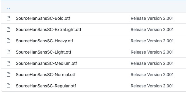 GitHub 地址:https://github.com/adobe-fonts/source-han-sans/tree/release/OTF/SimplifiedChinese