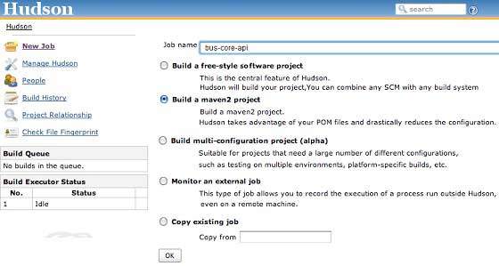 如果使用 CI 服务器更,我们每次的一个新项目,比如说实例中的 app-mobile-ui,添加为依赖 bus-core-api 项目时,开发者就不需要更新 bus-core-api 项目的 pom。Hudson 将会借助 Maven 的依赖管理功能实现工程的自动化创建。