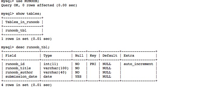 如果你不想字段为空可以设置字段的属性为 NOT NULL,如上实例中的 yssmx_title 与 yssmx_author 字段, 在操作数据库时如果输入该字段的数据为空,就会报错。