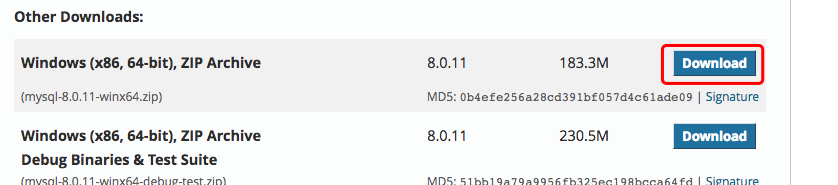 Windows 上安装 MySQL 相对来说会较为简单,最新版本可以在 MySQL 下载 中下载中查看()。