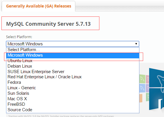 所有平台的 MySQL 下载地址为: MySQL 下载 。 挑选你需要的 MySQL Community Server 版本及对应的平台。