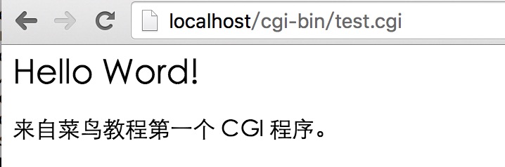 然后通过浏览器打开 http://localhost/cgi-bin/test.cgi,输出结果如下: