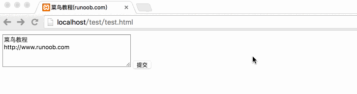 Textarea 向服务器传递多行数据,test.html 代码如下: