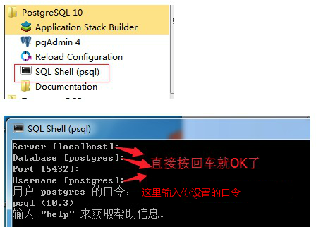 打开 SQL Shell(psql)