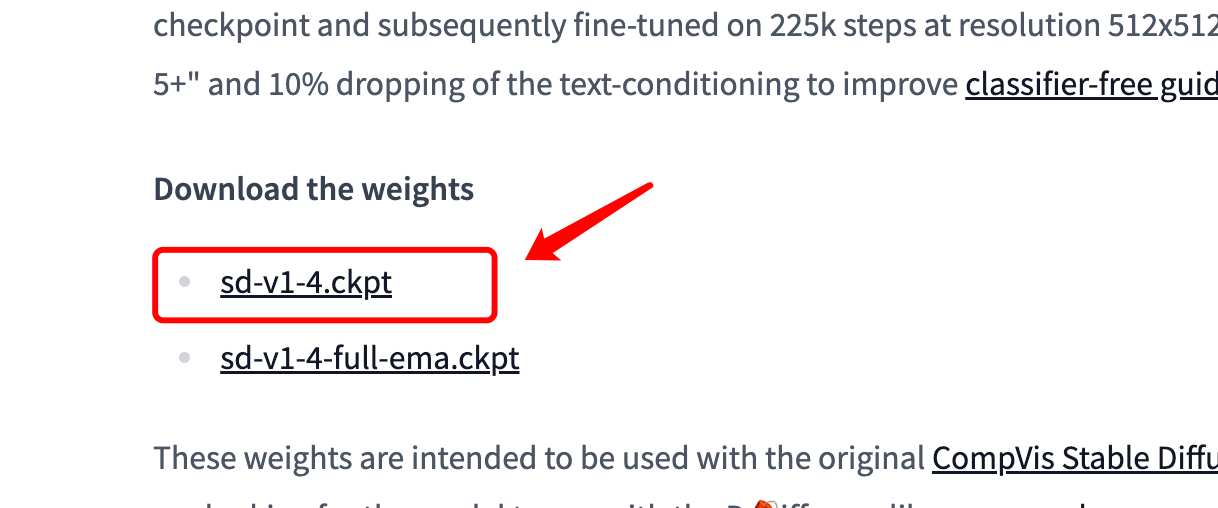接下来我们需要下载模型,下载地址:https://huggingface.co/CompVis/stable-diffusion-v-1-4-original