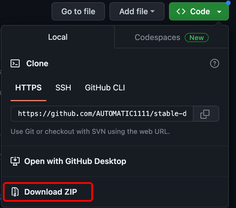 下载 Stable Diffusion web UI GitHub 源码 https://github.com/AUTOMATIC1111/stable-diffusion-webui。