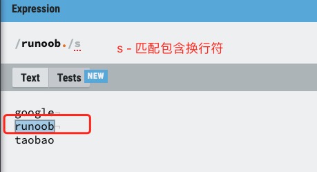 | s | 特殊字符圆点 . 中包含换行符 \n | 默认情况下的圆点 . 是匹配除换行符 \n 之外的任何字符,加上 s 修饰符之后, . 中包含换行符 \n。 |