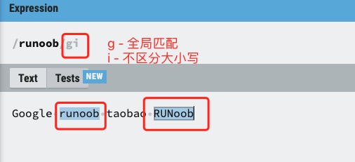 标记也称为修饰符,正则表达式的标记用于指定额外的匹配策略。
