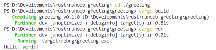 cd ./greeting cargo build cargo run