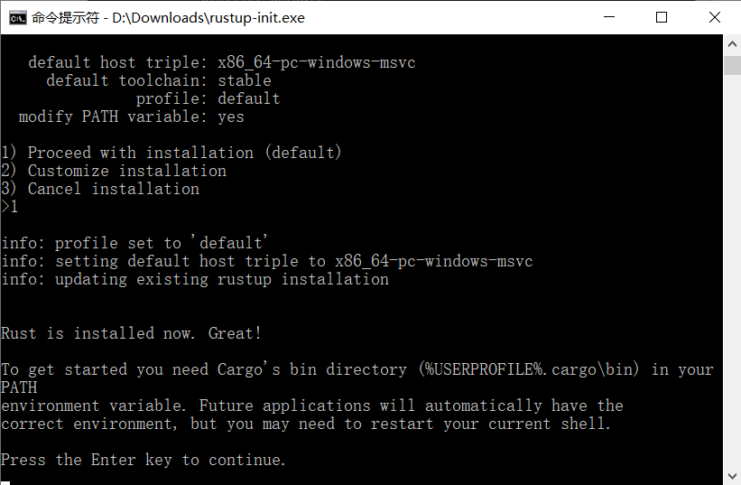 现在执行 rustup-init 文件: