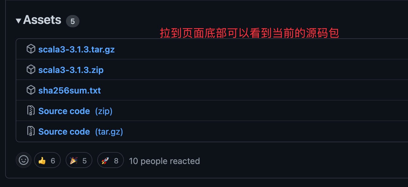 我们可以从 Github 地址 https://github.com/lampepfl/dotty/tags 下载 Scala 二进制包,本教程我们将下载 2.11.7版本,如下图所示: