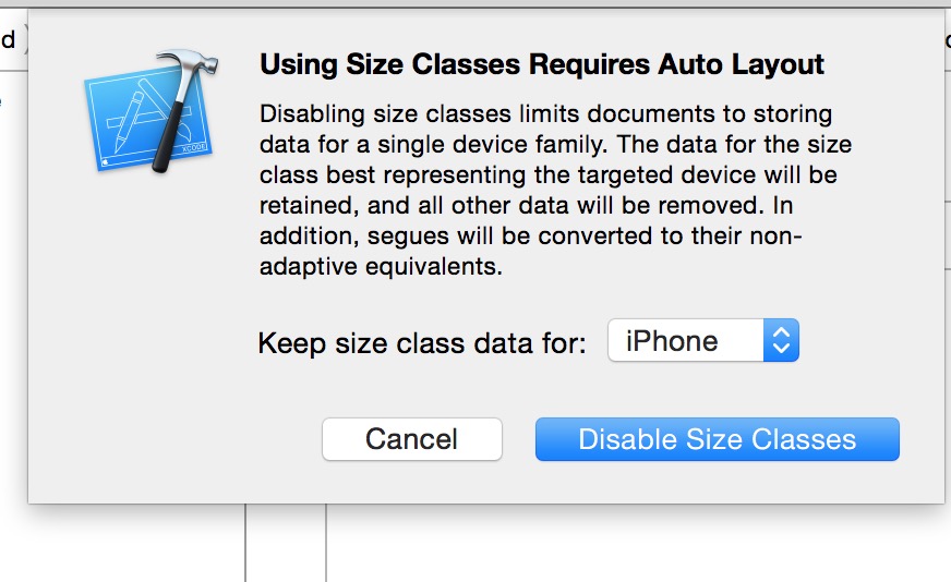 6、打开main.storyboard,默认看到一个简单的空白的应用界面,大小为平板界面大小。 如果开发都只需要开发兼容iphone手机的app,那么可以把Use Auto Layout的勾去掉(默认为勾上)。