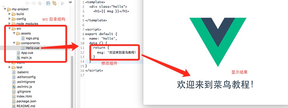 接下来我们可以尝试修改下初始化的项目,将 Hello.vue 修改为以下代码: