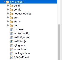 上一章节中我们使用了 npm 安装项目,我们在 IDE(Eclipse、Atom等) 中打开该目录,结构如下所示: